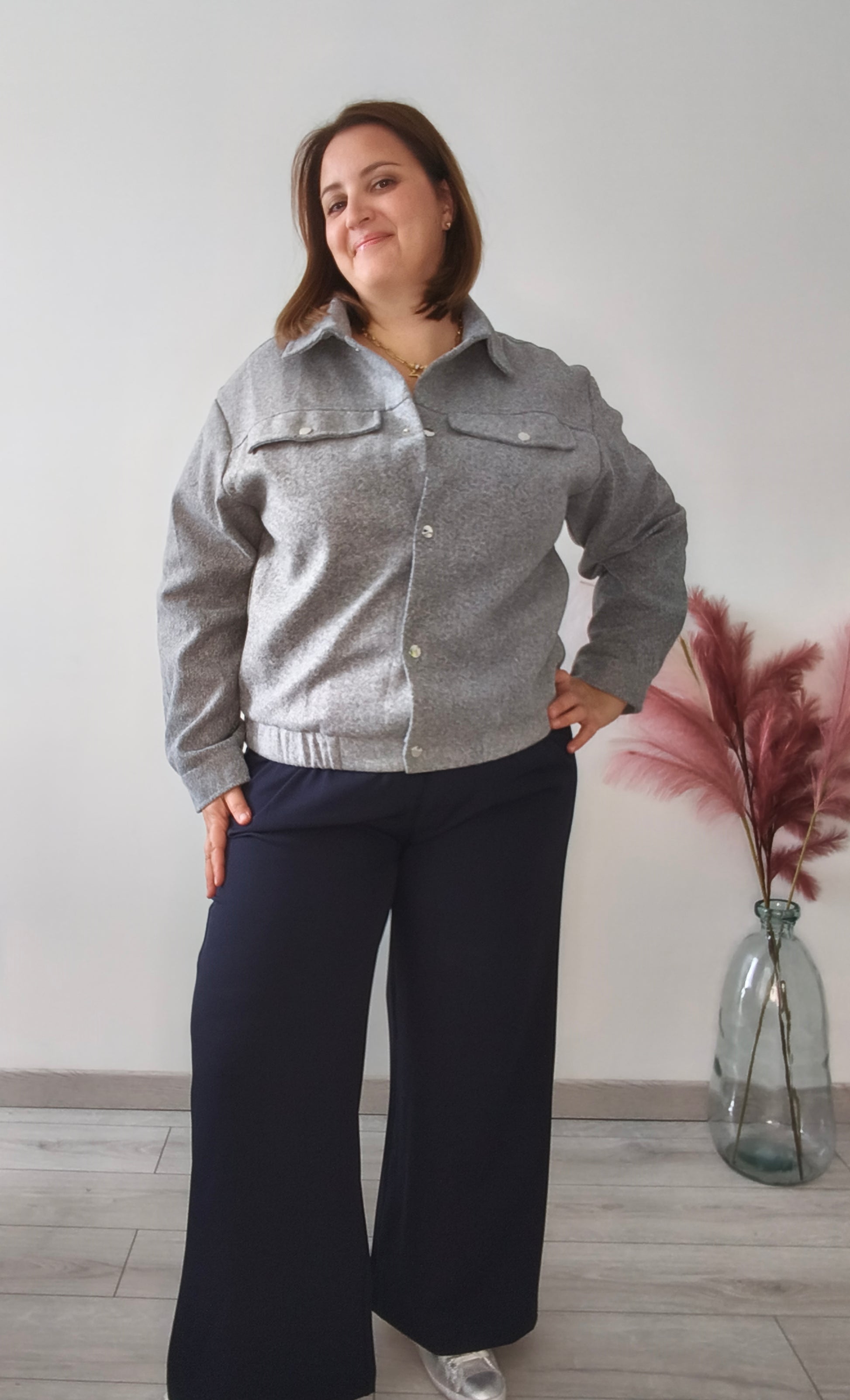 Craquez pour cette veste grise, à la coupe moderne et au détail fonctionnel : un élastique à la base qui structure la silhouette tout en apportant confort et originalité. Son tissu texturé et ses poches plaquées lui donnent un look utilitaire revisité, parfait pour les femmes qui aiment allier style et praticité.